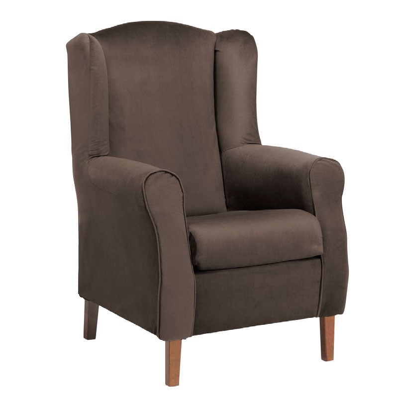 Práctica y cómoda butaca orejera, debido a sus reducidas medidas la puedes poner en tu salón o dormitorio. Dispoible en telas antimanchas en color chocolate, moka o gris. Medidas 78 cm de ancho x 78 cm de fondo x 100 cm de alto.