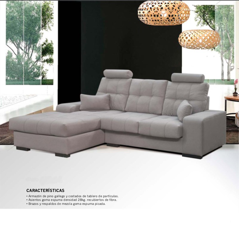Original chaise longue de diseño de 2.73 cm de largo. Brazos y respaldos rellenos de mezcla de goma espuma picada. Asientos de goma espuma de densidad de 28 kg. recubiertos de fibra. Su diseño es muy apropiado para un salón moderno. El módulo chaise longue se puede pedir tanto a derecha como a izquierda.