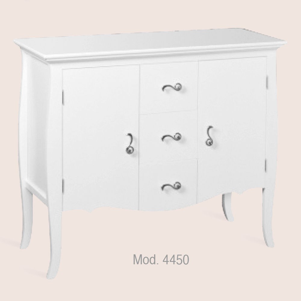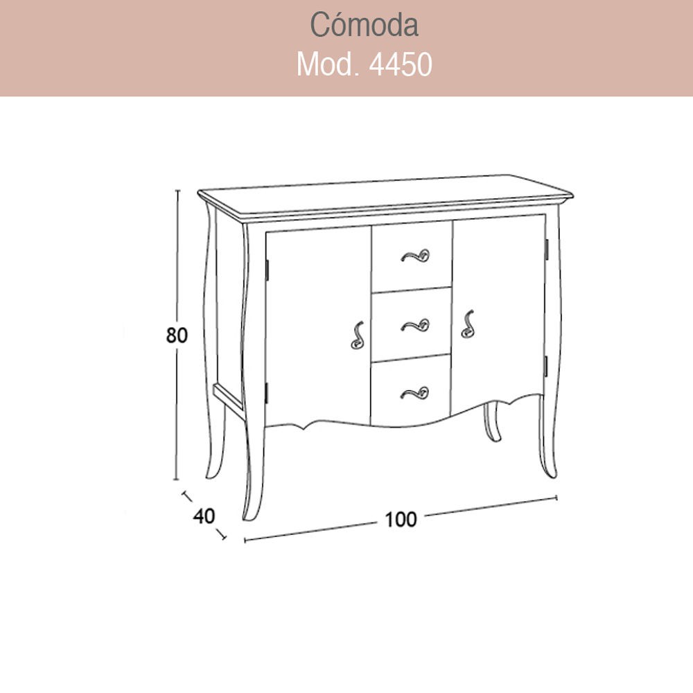 Cómoda con dos puertas situadas en los extremos de la pieza. Cuenta con tres cajones centrales para guardar cualquier otro tipo de objetos, ropa, menaje, etc…