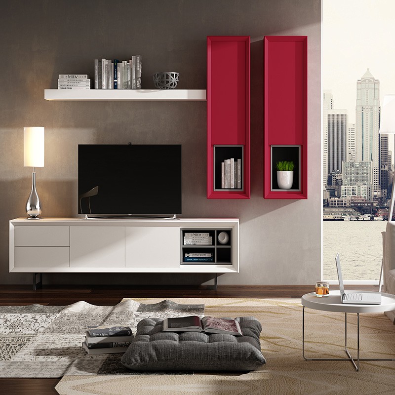Salón minimalista moderno, disponible en nueve colores de lacados satinados.