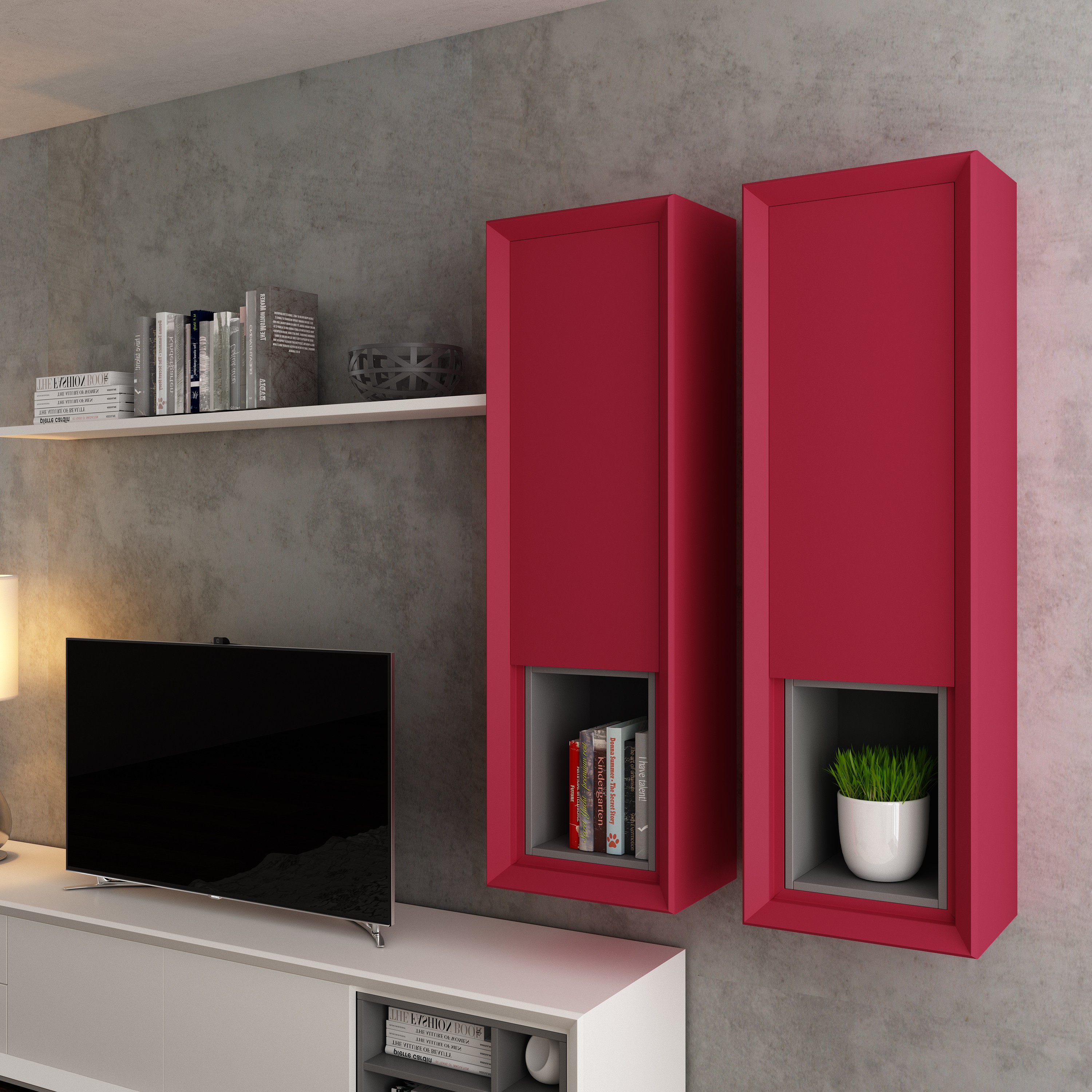 Se hace entre cualquiera de sus catorce colores a elegir, tanto en frentes como en armazón. Composición de 2.75 cm. en dm alta densidad, lacado en color blanco combinado con rojo y pizarra.
