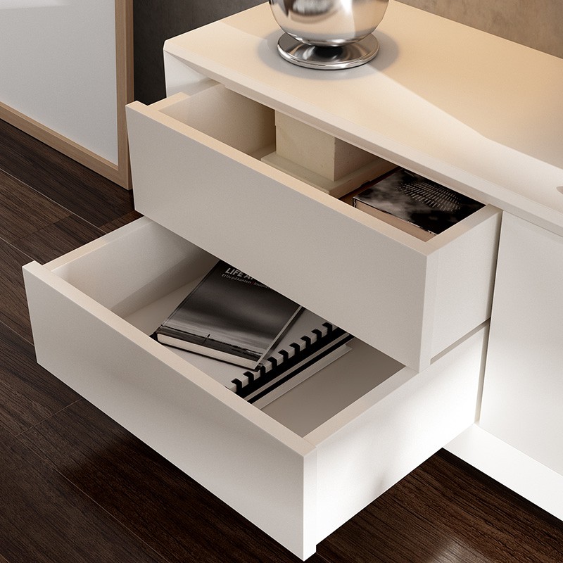 Este especial mueble de diseño vanguardista, creará un espacio vital en tu salón, dandole un aspecto de modernidad y sencillez. Con formas geométricas rectas. La diversidad de colores, tanto en chapa de roble como sus nueve colores de lacados satinados, te permiten decorar tu salón aportándole calidez y elegancia con un toque de distinción.