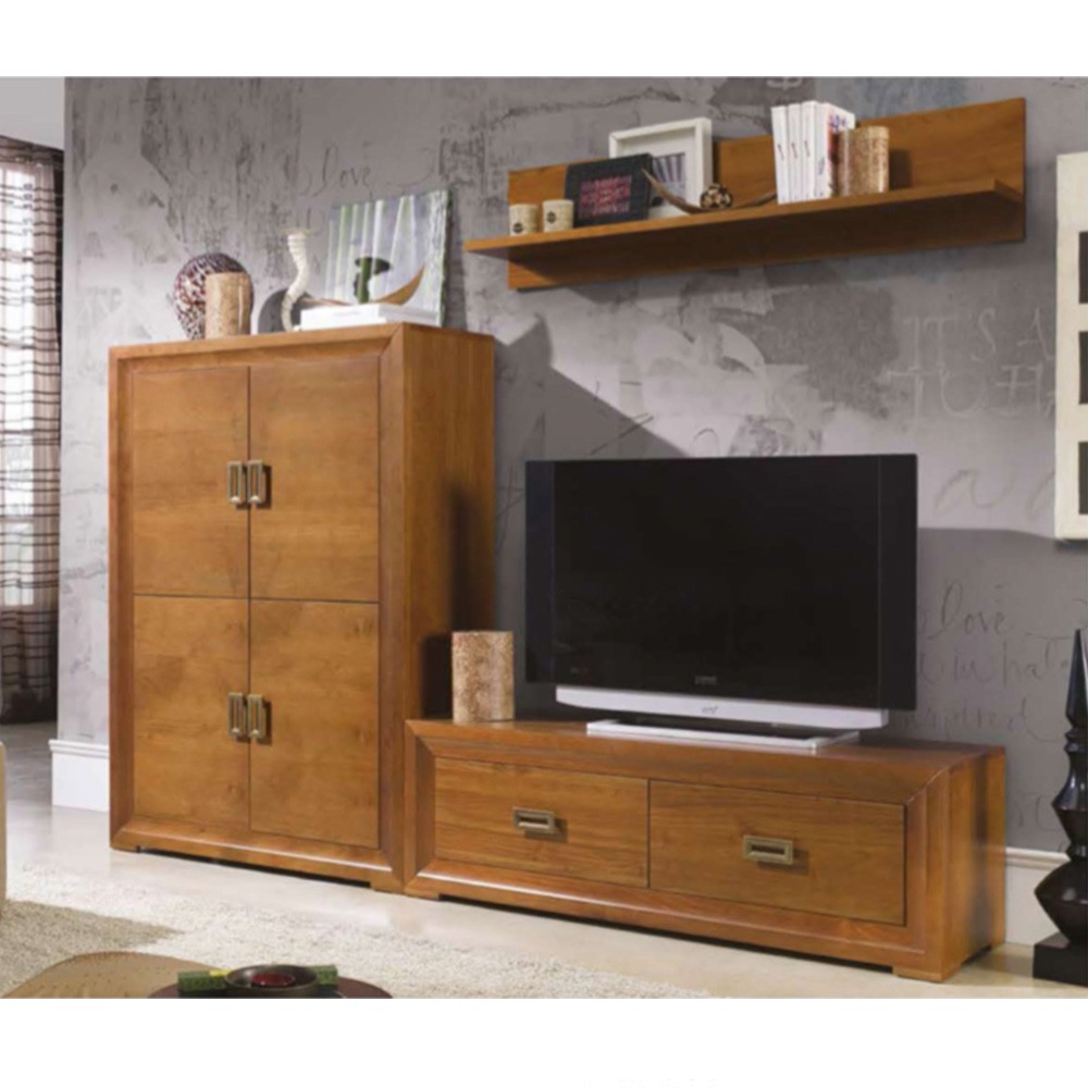 Esta composición de 2.30 cm consta de mueble de t.v. de 130 cm, de alacena de 1 metro y de estante de pared de 130 cm.
