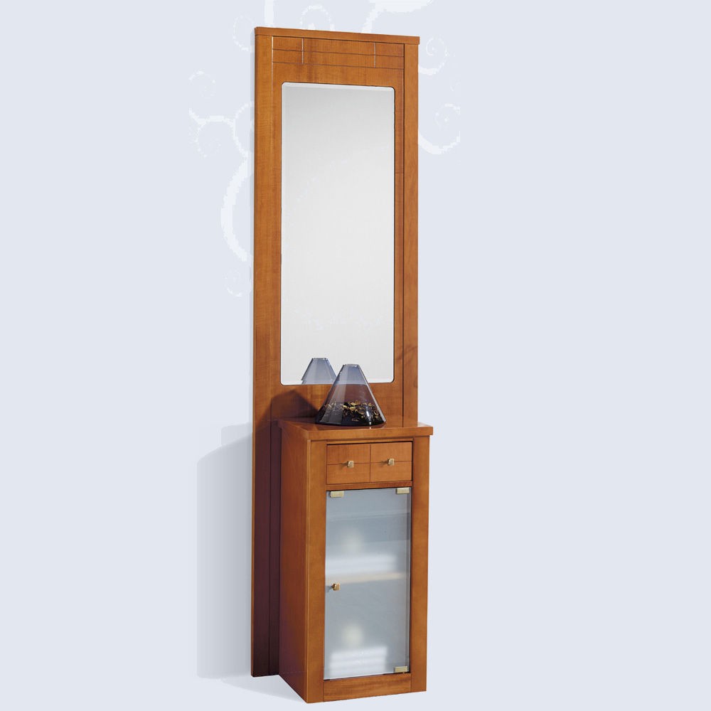Estupendo recibidor de madera en color cerezo, ideal para dejar las llaves cuando entras en casa. Con un ancho de 56cm perfecto para adaptarse a espacios reducidos   Cuenta a con un espejo en la parte superior para asegurarte de que estas perfecto para salir a la calle y con varios cajones para guardar objetos personales.