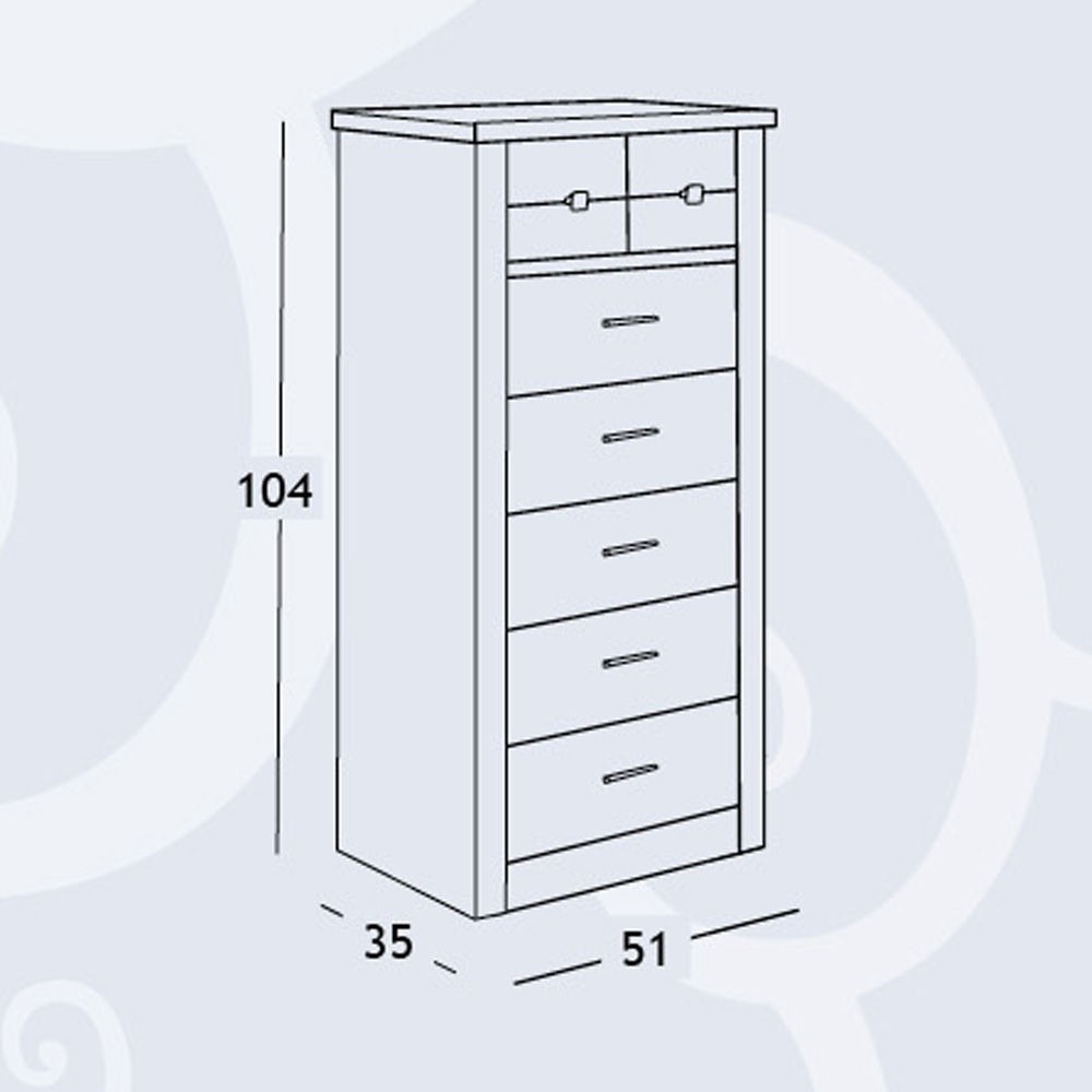 Elegante y práctico sinfonier de seis cajones en color cerezo que se adapatará a cualquier habitación o rincón de tu hogar para hacer de tus espacios lugares cómodos y con estilo que nunca pierden su practicidad.