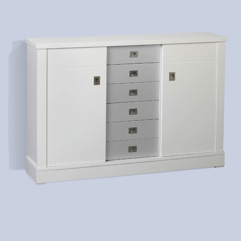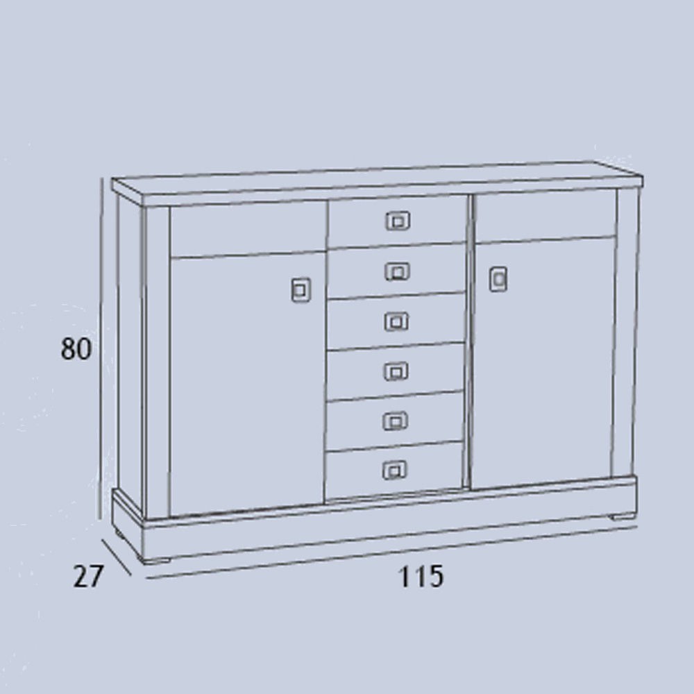 taquillón en color cerezo con dos puertas correderas y seis cajones.